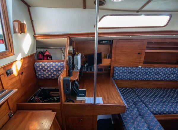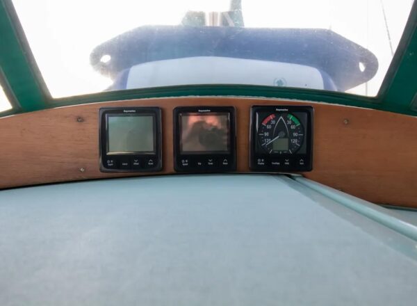 - Navigation Equipment: Raymarine i70/ i70s speed depth wind in cockpit with master multifunction display at nav table- new 2024-5. Open CPN PC based nav system with keyboard and mouse linked to other electronics -new 2024-5 Furuno radar. Furuno vhf with DSC. Standard Horizon GPS installed but now largely redundant. New GPR receivers for i70 and AIS as part of comprehensive electronic nav update. 2024-2025 Raymarine with older main computer but new cockpit controller 2025. New Raymarine AIS system integrated with nav 2025.