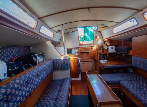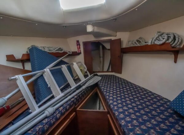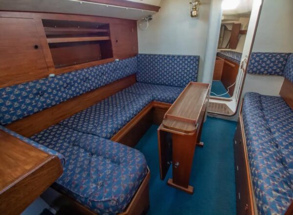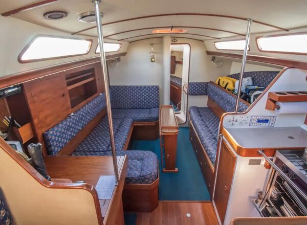 - Sails: White cruising sails by Richardson (2007), regularly maintained and in fair condition, along with a storm jib, trysail (with separate mast track), spinnaker (used once), and cruising chute (seldom used).